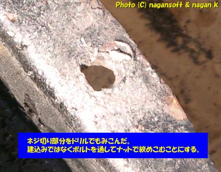 上からボルトを挿入して、下からナットで絞めこむ。つまり挟み込んで絞めて固定する方法にします。