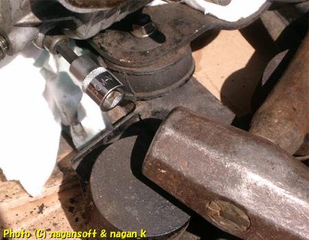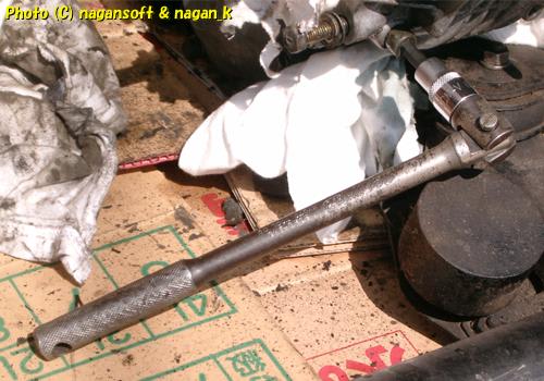 このボルトはとても固かったのですが、メカネレンチ+鉄パイプの作戦でほどきました。
