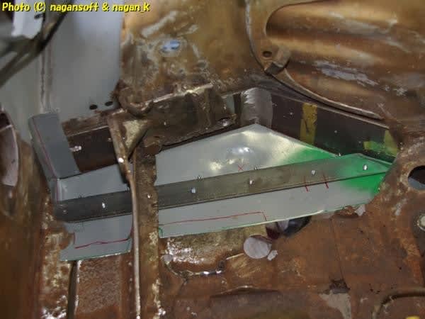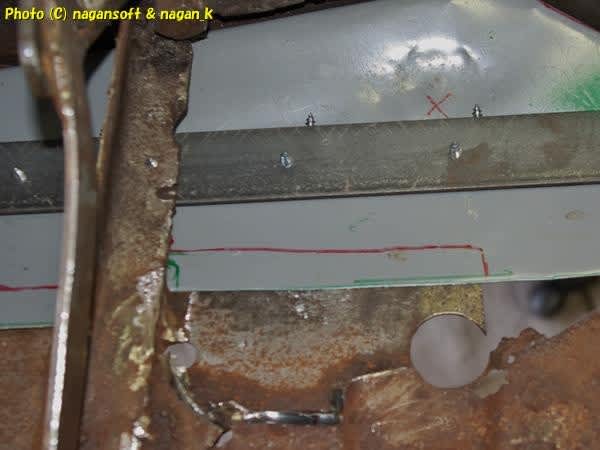 何回も車体下に潜ってはマークして、車体下から出てきてはブリキはさみでチミチミ刻んで、車体下に潜ってハンマーでしばいて切り口をマークして….