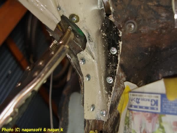 仮止めとしてますが、最終的にはリベット打ちになるので実質的な梁との密着位置決定です。