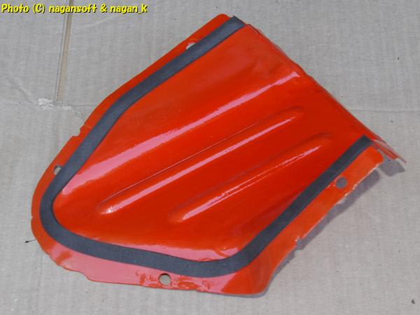 「リヤーシート下の燃料タンク鶴頸を保護するカバー」の取付調整です。