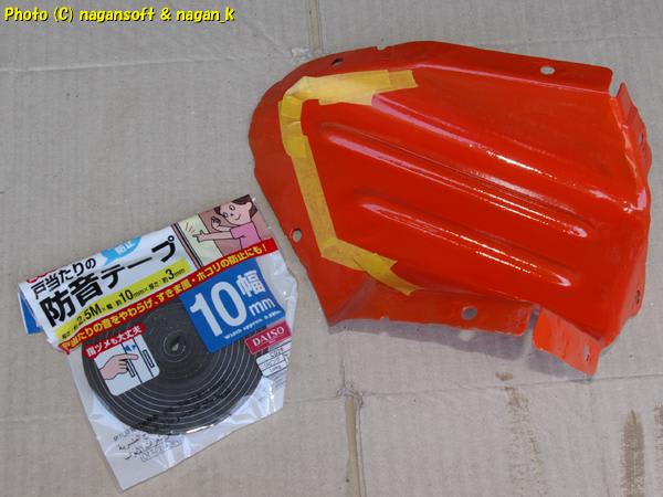それでも、念には念を、と、簡易防水対策です。車体下からのロードノイズ、およびエンジン音の侵入対策も兼ねているつもりです。