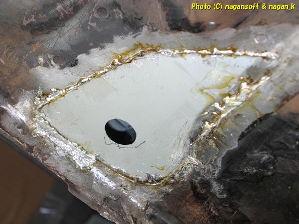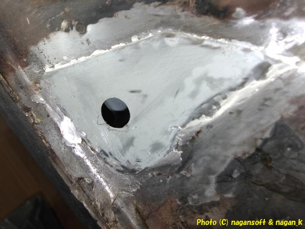 R-2君、助手席梁裏のパッチ鉄板貼り付け2日目