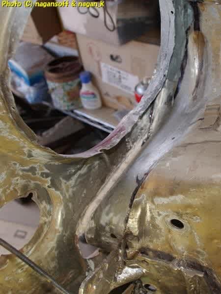 この部分は、フェンダーエプロンとフロントパネルをハンダ板金で接続してから、シールを入れてます。