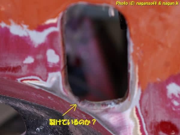 ともかく裂けているのではありません。変な溶接団子ができていて、かつ、間口デザインがおかしいだけです。