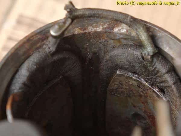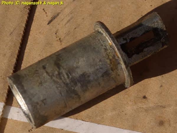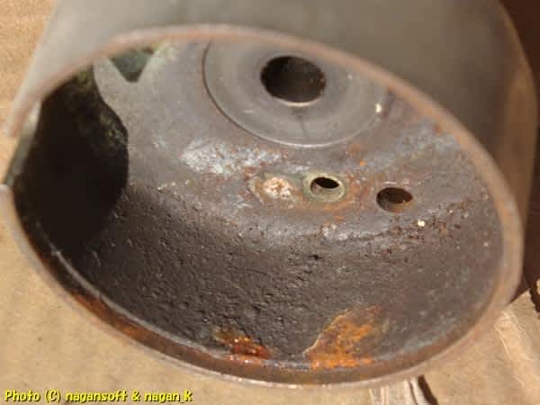 本体筒の外側黒色もパーツクリーナーでドロドロに解けて、オリジナルの黒色と錆肌が登場です。つまり本体の黒色は錆取しないで汚いものみえなくなーれとシャーシブラックで上塗りしていたものと思われます。