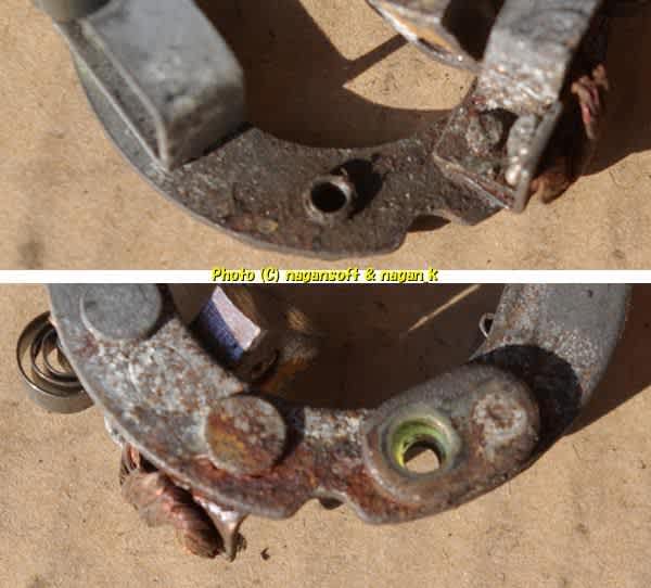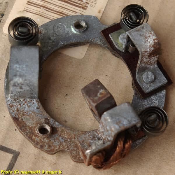 ブラシプレートのブラシも盛大な芋ハンダされてますし、錆の上になにかの塗料を塗っているのです。