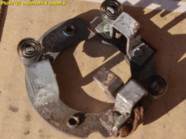 開けたら内部から錆がボロボロでてきたセルモーターの部品を掃除します。