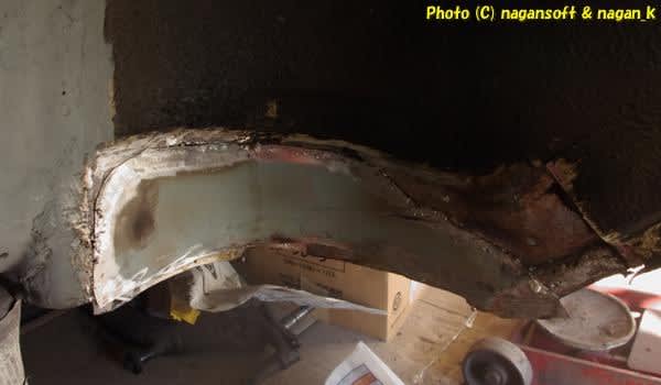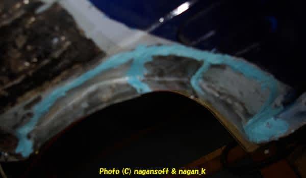 前回までで運転席床手前錆穴と運転席横フェンダー錆穴をパッチ鉄板で塞ぎました。