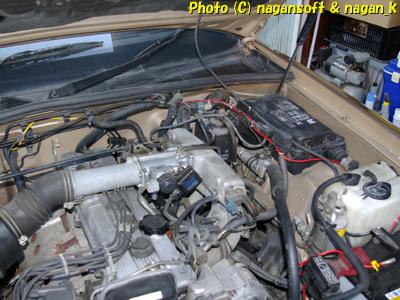 配線は、エンジンルームの熱害を受けないところを狙う。かつ、オルタネーター、デスビ、イグニッションコイルといったノイズを受けそうなところから遠ざける。といったところですね。