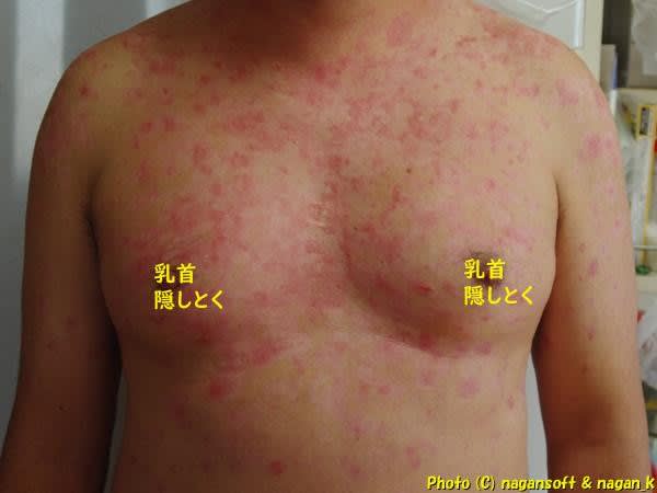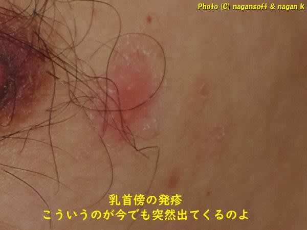 コロナワクチンのタイミングで、乳首とか脇とか…。そういった部位に新規発疹がそれも大きめのが出たのよ。