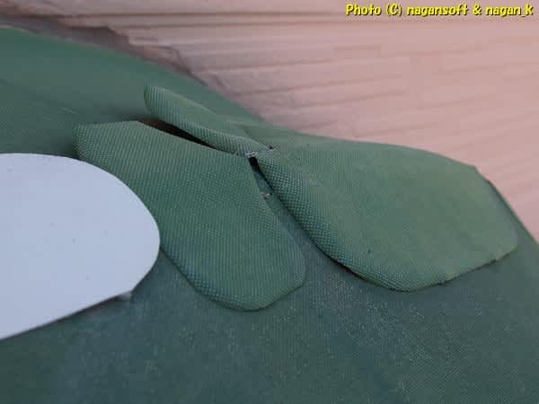 わかるかなー。パッチの横のテント生地が裂けちゃってる。