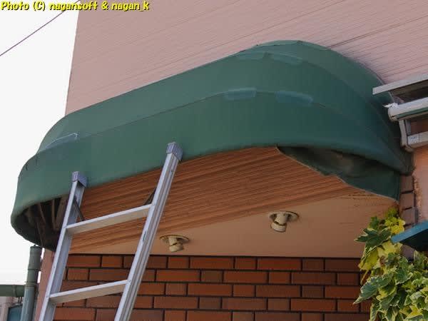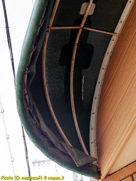 ボンドで貼り付けていたのですが強風での収縮に追従できず剥がれているのです。