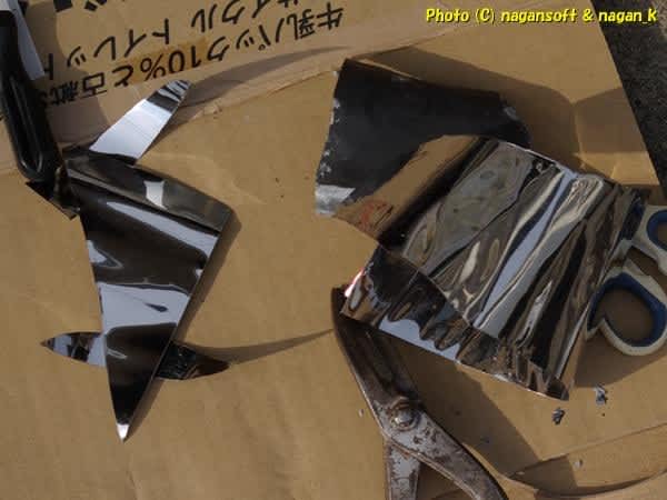 チョキチョキと、適当に大きめにブリキバサミで切り出して….