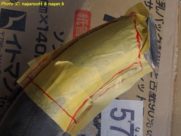 まずは、マスキングテープをペタペタ貼って型取りします。