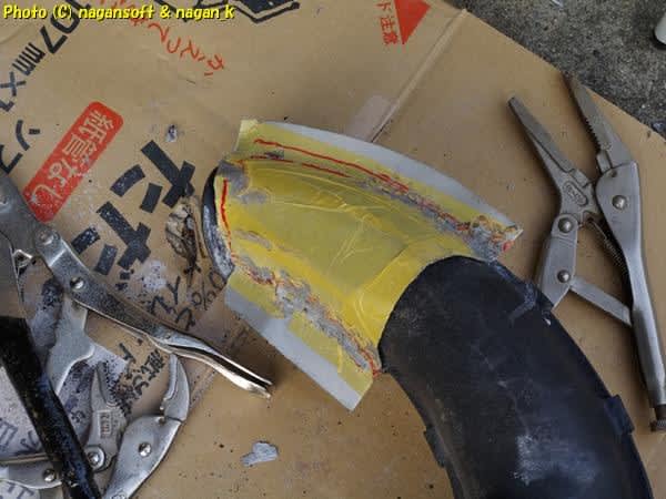 R-2君、マフラー鶴首化粧カバー作成1日目