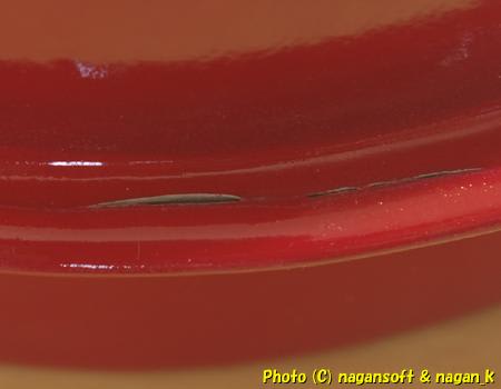 ちなみに最初に疑ったのはベースに染めている赤色塗料でした。