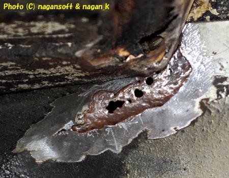 それより、ハンダでサビ穴をふさいでいくのが、ある意味で斬新らしく、興味津々で居すわられたりして大変です。(もちろんのように、横槍のチャチャが一杯入ります)