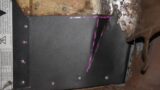 貫通しているサビ穴を当て板あててハンダしました。エンジンルーム側の当て板をハンダする前に内側になる部分にエボローバルを塗り塗りです。