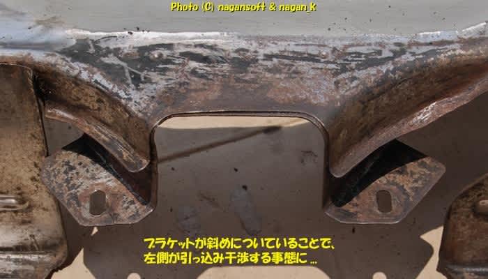 斜めに固定したものだから、ブラケットが水平ではありません。左側がアンダーカバーに接近することになり….