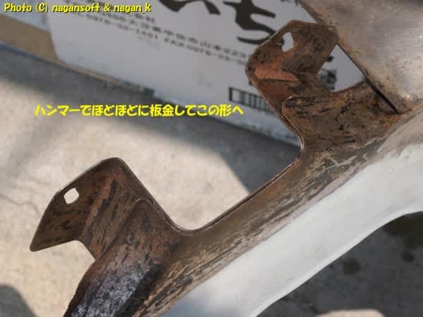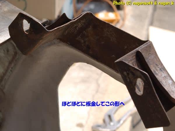 ハンマーを握りしめてコツコツと当てがねのところで曲げ板金です。