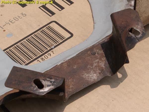 この先端マウント部分ですが、ブラケットが溶接されていることより鉄板が合わさっている部分はサビが出ていると思うのよね。