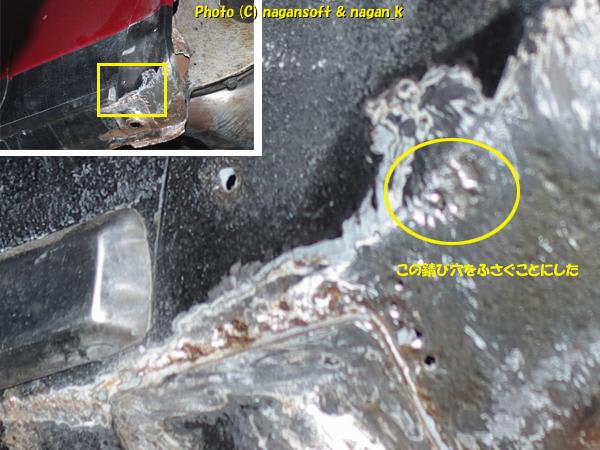 ついては、小さいサビ穴をちょっとだけ塞いでみました。