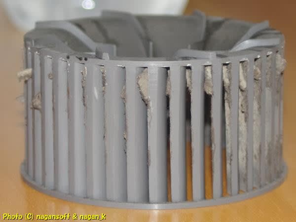 私は、嫁がカバーを引き抜くときに強引にひっぱったりしてシロッコファンカバーを曲げたりしたのではなかろうかと思っていたのよ。