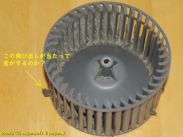 その飛び出しがシロッコファンカバーに当たって音がする。