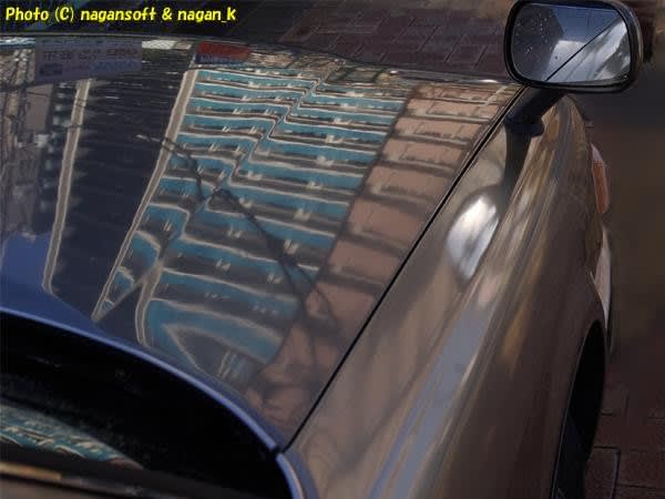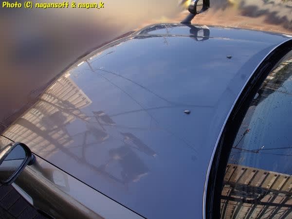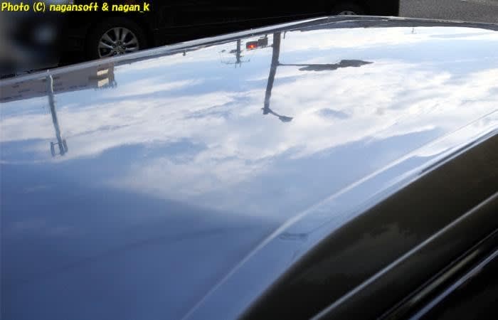 ボンネットの写りこみについては….まだ乾燥途中ですがこんな状態へ。