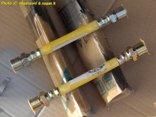 そうそう。今回使用したブレーキホースは当時物と思われるやつを使いました。(品質に問題なさそうなら古い部品から使っていくのが私のルールです)