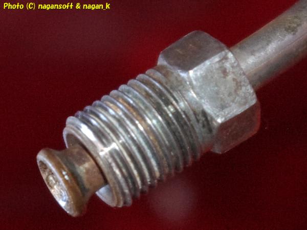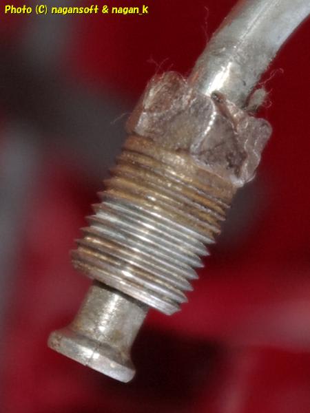 ブレーキホースの金具部分はこってりとしたメッキが施されてます。昔のクロメートメッキですよ。