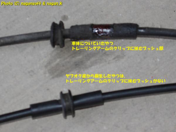 写真を見たらサイドブレーキワイヤーに保護材のブッシュがついているのです。