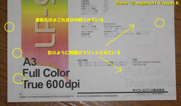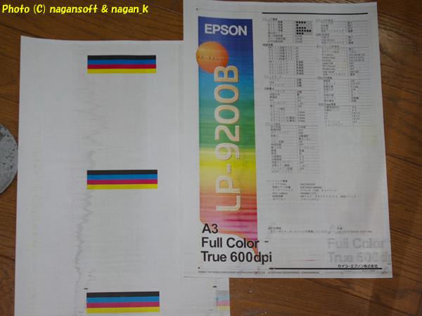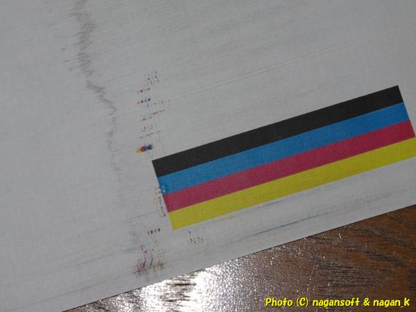 掃除したことで、ドラムのキズ部分に綺麗にトナーが乗るようになって、カラフルな汚れ点をつけてくれました。