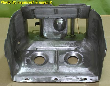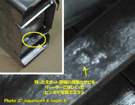 剥がしたところには、スポット溶接の痕と、サビがありました。