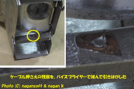さて、残った残骸を、バイスプライヤーで挟んで、グリグリして強引に剥がします。