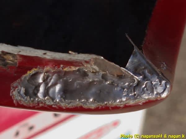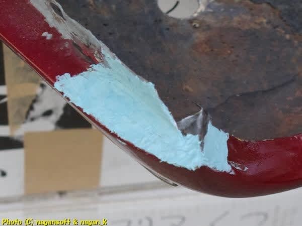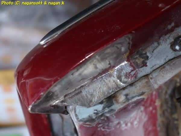 練済みのパテを大慌てでヘッドライト枠下部分のハンダ境界あたりになすくりました。