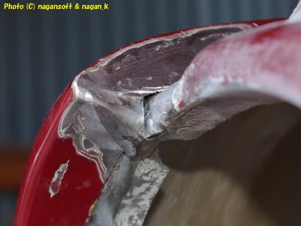 ハンダ板金したフェンダーを取り付けてみて隙間がどのようになったかを確認です。