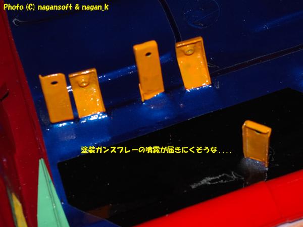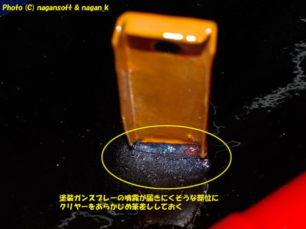 そういう噴霧の届きにくそうな部分に、クリヤーを筆差ししておきます。