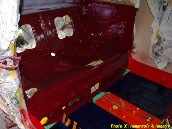 リヤシート部分を撮影するのですが、クリヤーでピカリンコになっているのでデジカメのオートフォーカスが悩んでピント合わせしてくれません。まさにデジカメもテカテカに目がくらんでます。