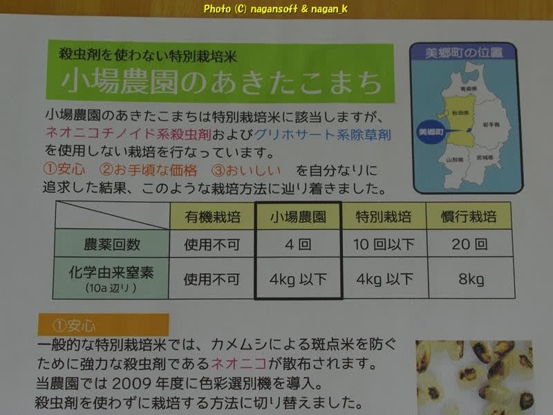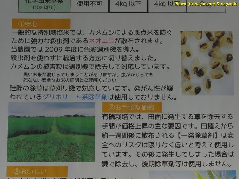「特別栽培米」と「有機栽培」という文言をお勉強。