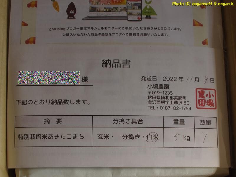 お米の生産者さんの所在等を記した部分の写真でございます。