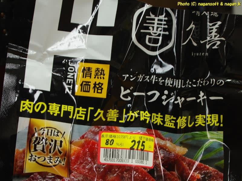 乗せた代物は、某ディスカウントスーパーで8割引き処分販売されていた、高級嗜好品と思われるビーフジャーキーです。