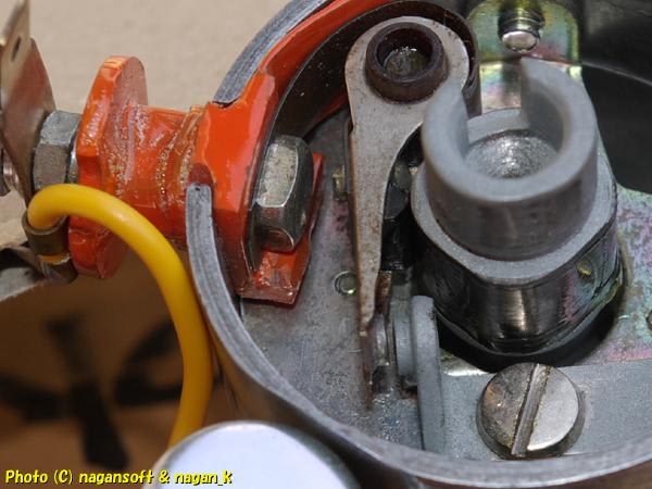 とりあえずポイントの接点をダイヤモンドヤスリで研磨するのですが、酷く接点が荒れて深い凹みを生んでましたので、この程度の整形であきらめました。