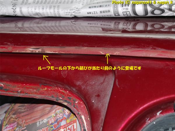 - ルーフモールの下から錆びが出るだろうからサビ取りする