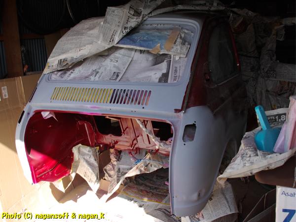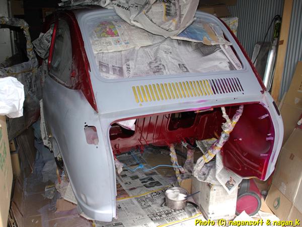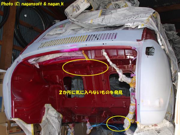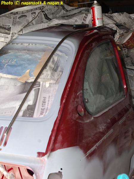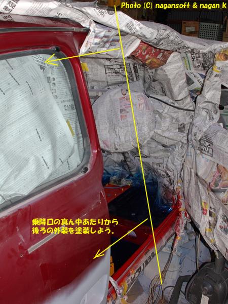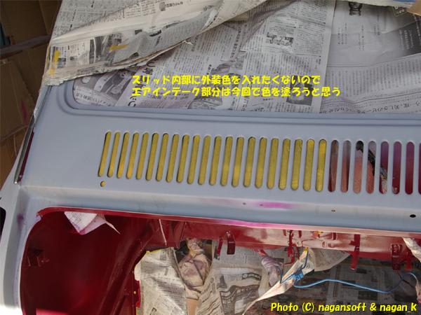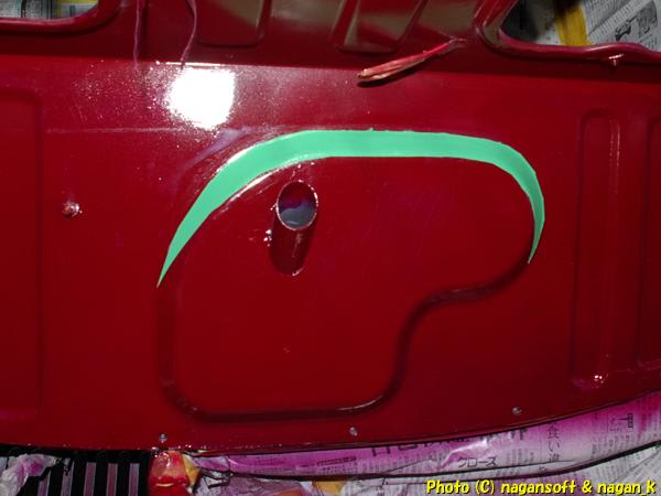 - 車体後ろ半分と、エンジンルーム入口付近を塗装する