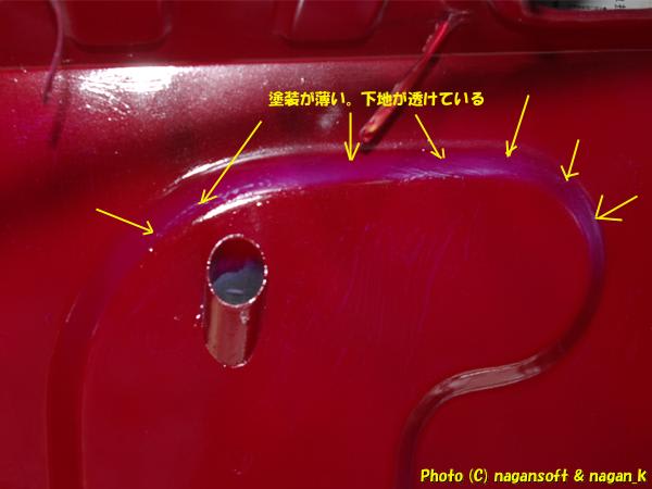 エンジンルーム天井部分で塗装が薄いところを発見です。