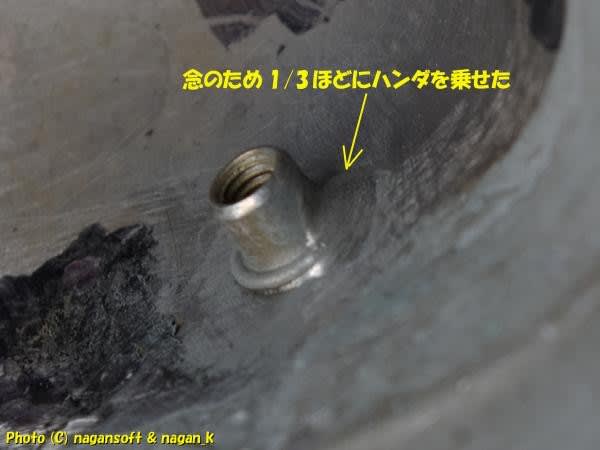 カバーの鉄が薄いからねー。念のためにと思い裏側ブラインドナット飛び出し部分の3分の1ほどにハンダを渡しておきました。