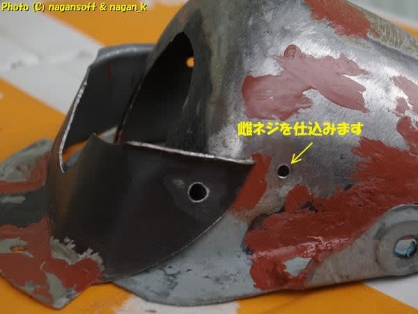 下穴として7mmの穴を開けたらいいのですが、カバー自体の鉄が薄くて怪しいのです。7mmのドリルを立て込んだら丸く綺麗に穴を開ける自身がありません。
