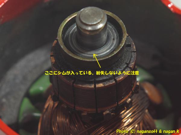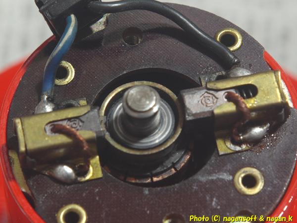 ブラシプレートをはめ込むのですが、その前に、モーターシャフト側の点検です。